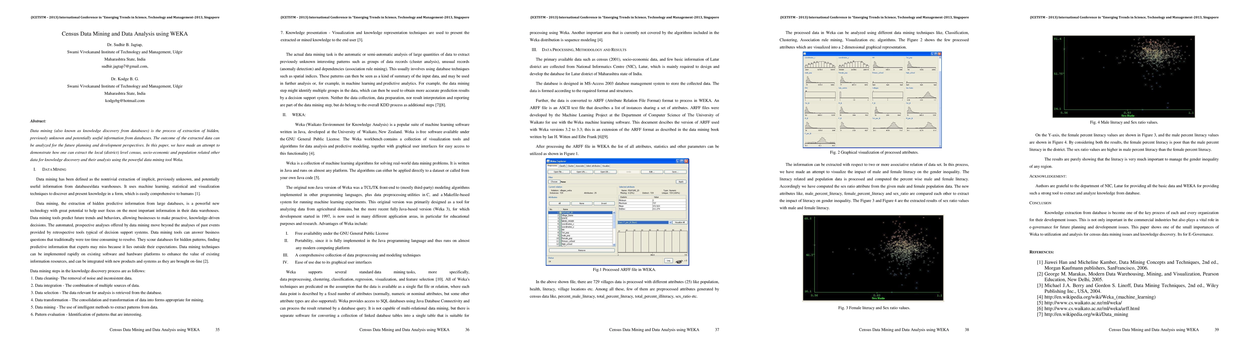 This paper explores the extraction and analysis of local census data for socio-economic insights using the WEKA data mining tool, demonstrating its potential for future planning and development.