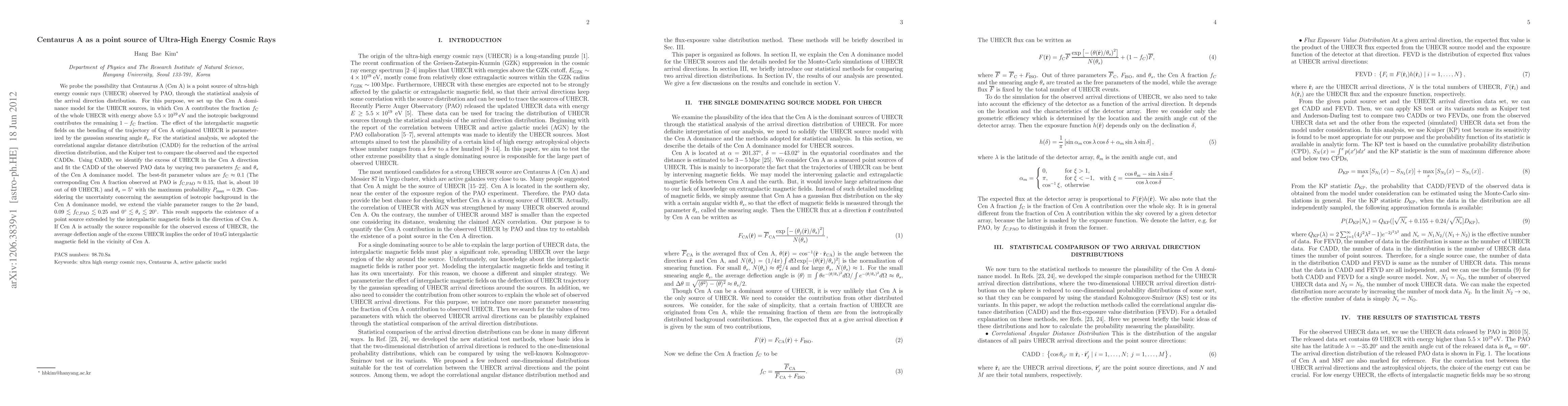 This study investigates whether Centaurus A (Cen A) could be a point source of ultra-high energy cosmic rays (UHECR) by analyzing the arrival direction distribution. The best-fit model suggests Cen A contributes approximately 10% of observed UHECR, with an average deflection angle indicating a possible intergalactic magnetic field of around 10 nG in its vicinity.