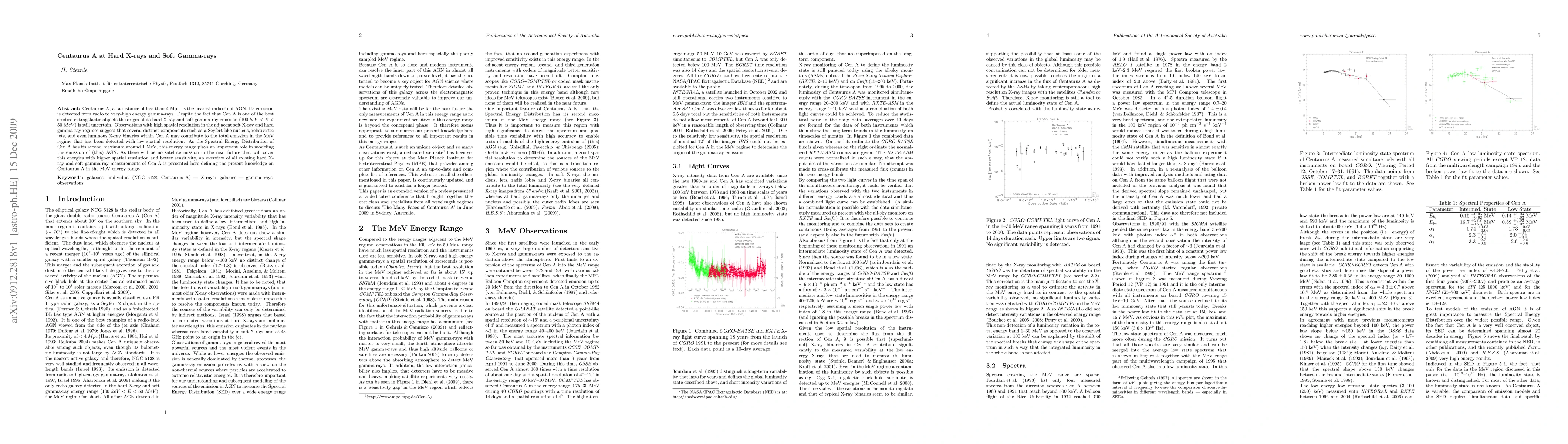 This paper reviews Centaurus A's hard X-ray and soft gamma-ray emissions, highlighting the contributions of various components like a Seyfert-like nucleus and relativistic jets. Despite its study, the origin of its MeV emission remains uncertain, underscoring the need for higher resolution observations.