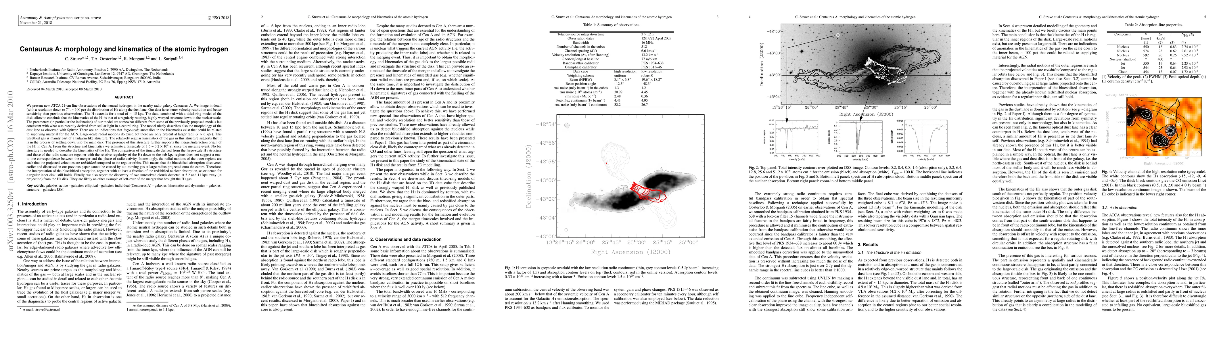 New observations of Centaurus A reveal a regularly rotating, highly warped structure of atomic hydrogen extending ~15kpc, with no indications of large-scale anomalies in its kinematics, suggesting an origin from a merger or interaction event.