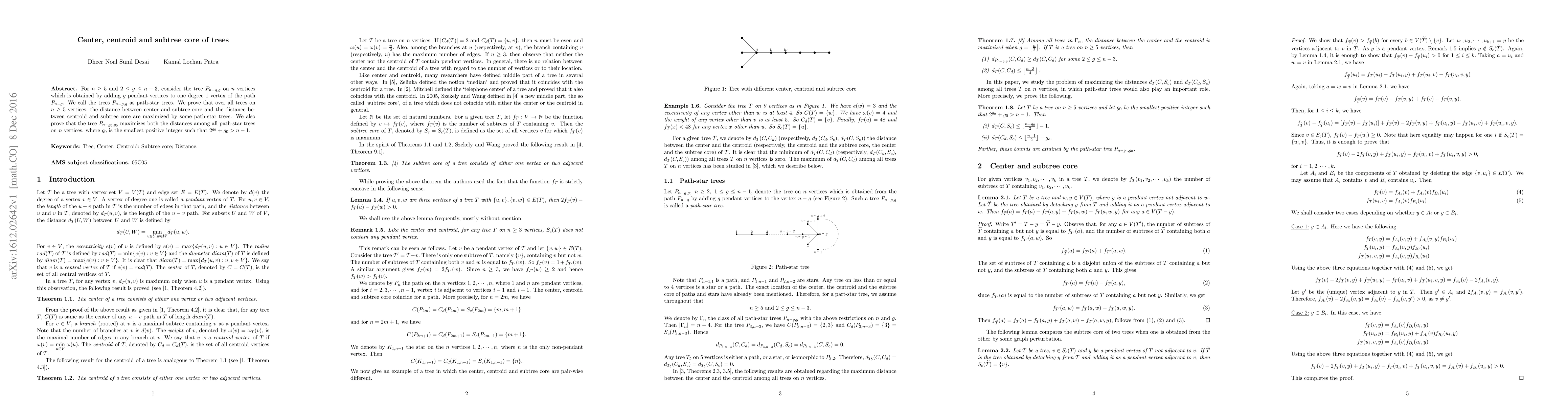 This paper investigates the properties of path-star trees, a specific class of trees formed by adding pendant vertices to a path. It proves that among all trees with $n \geq 5$ vertices, certain path-star trees maximize the distance between the center and subtree core, as well as the centroid and subtree core. It further identifies the specific path-star tree that maximizes these distances within its class.