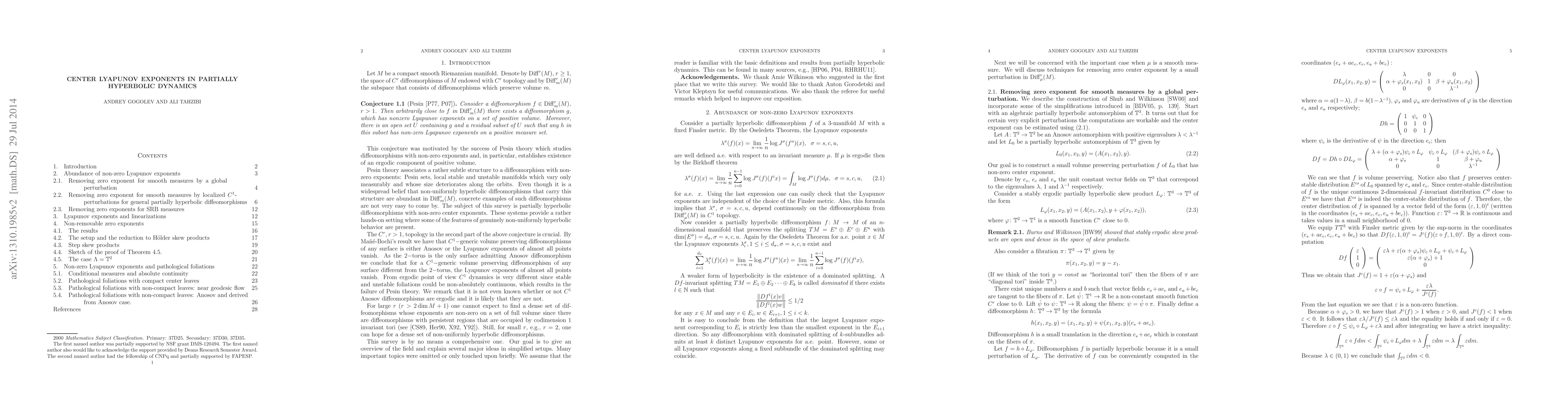We survey a collection of recent results on center Lyapunov exponents of partially hyperbolic diffeomorphisms. We explain several ideas in simplified setups and formulate the general versions of results. We also pose some open questions.