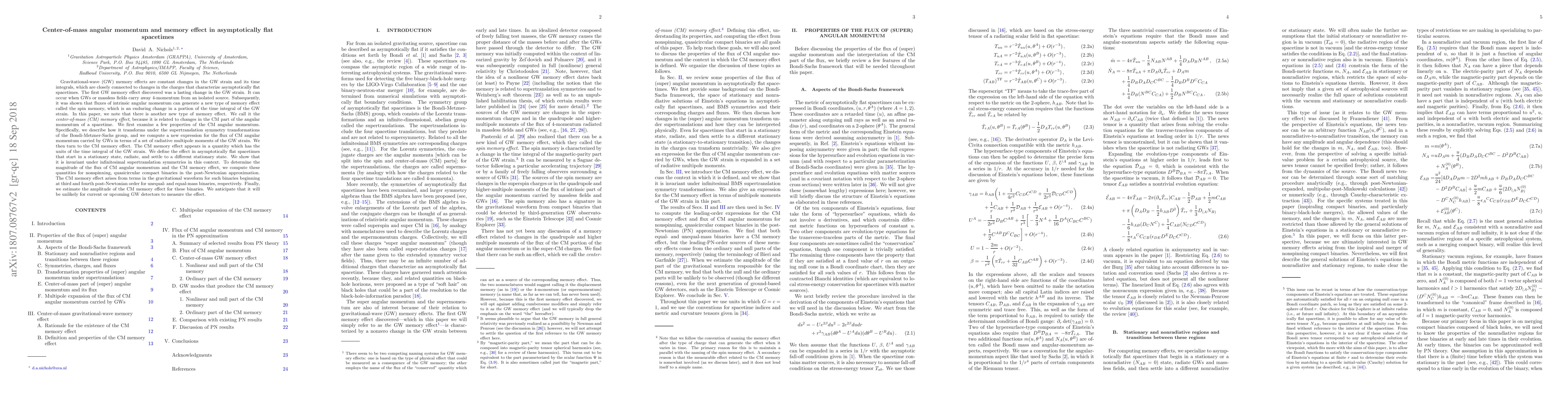 This paper investigates the center-of-mass (CM) memory effect in gravitational waves (GWs), a new type of memory effect linked to changes in the CM angular momentum of asymptotically flat spacetimes. The authors compute the flux of CM angular momentum and demonstrate its invariance under supertranslation symmetries, revealing its presence in the gravitational waveform of nonspinning, quasicircular compact binaries.
