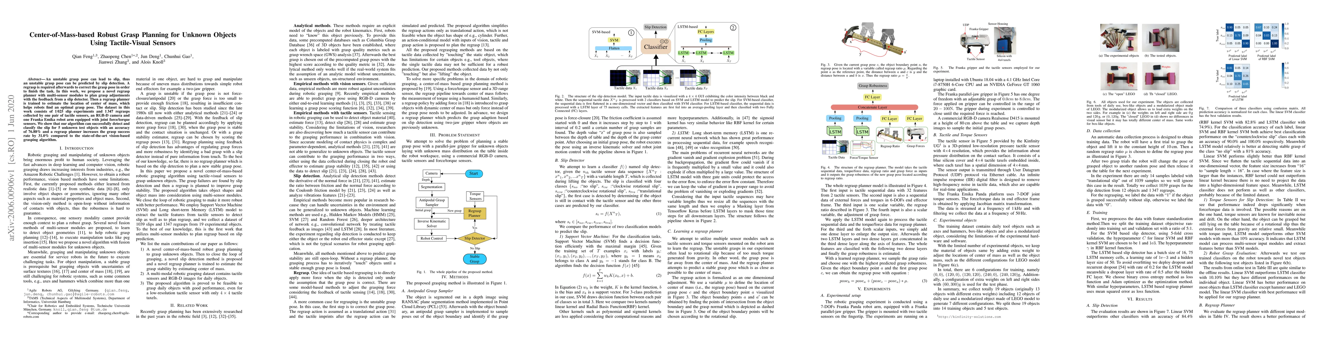 An unstable grasp pose can lead to slip, thus an unstable grasp pose can be predicted by slip detection. A regrasp is required afterwards to correct the grasp pose in order to finish the task. In this work, we propose a novel regrasp planner with multi-sensor modules to plan grasp adjustments with the feedback from a slip detector. Then a regrasp planner is trained to estimate the location of center of mass, which helps robots find an optimal grasp pose. The dataset in this work consists of 1 025 slip experiments and 1 347 regrasps collected by one pair of tactile sensors, an RGB-D camera and one Franka Emika robot arm equipped with joint force/torque sensors. We show that our algorithm can successfully detect and classify the slip for 5 unknown test objects with an accuracy of 76.88% and a regrasp planner increases the grasp success rate by 31.0% compared to the state-of-the-art vision-based grasping algorithm.