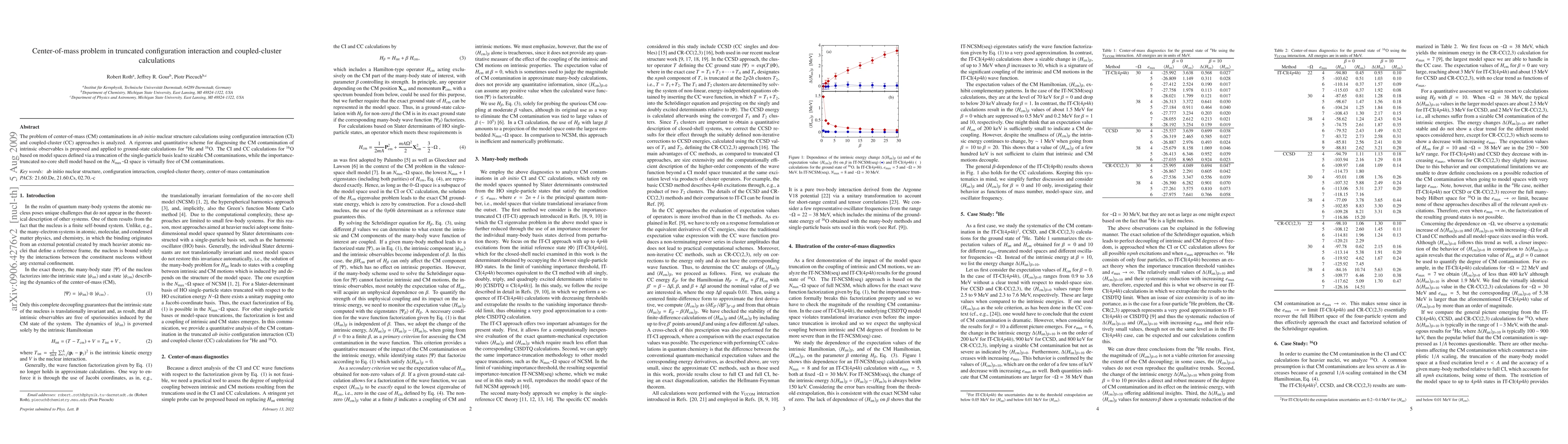This paper analyzes CM contamination in truncated CI and CC nuclear structure calculations, proposing a quantitative scheme to diagnose such contaminations. It finds that truncated CI and CC calculations for O-16 show significant CM contamination, while the importance-truncated no-core shell model is virtually free of such contaminations.