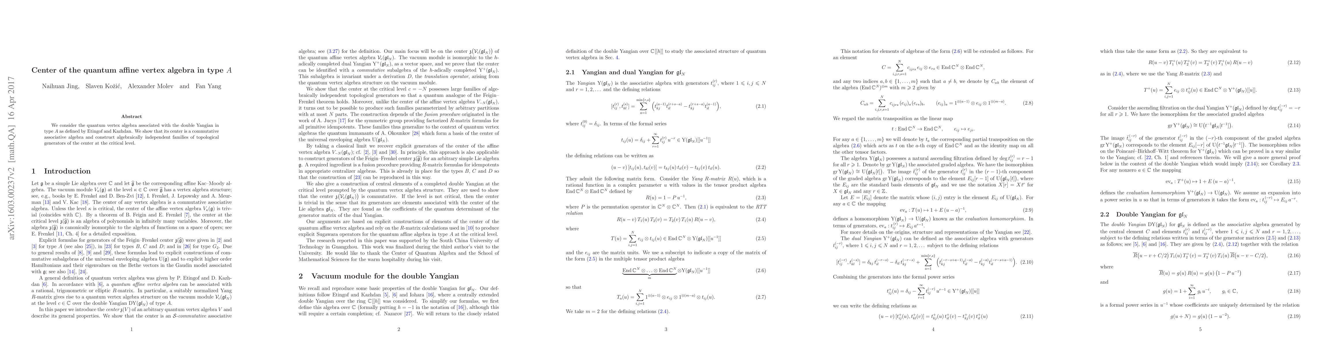 This paper explores the center of the quantum affine vertex algebra associated with the double Yangian in type A, demonstrating that it is a commutative associative algebra and identifying algebraically independent topological generators of the center at the critical level.