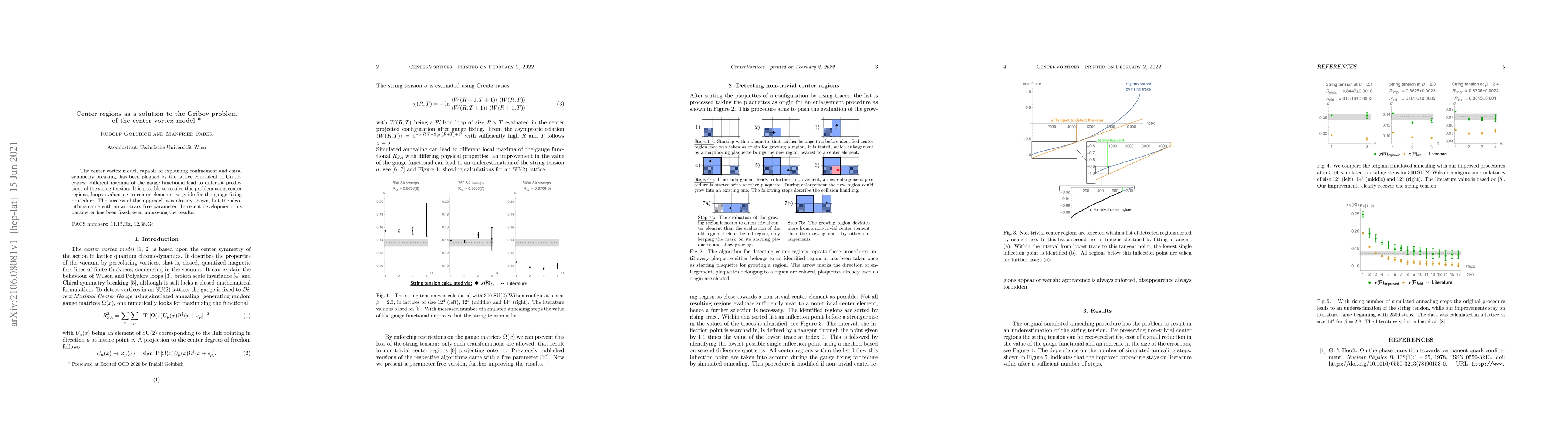 The center vortex model, capable of explaining confinement and chiral symmetry breaking, has been plagued by the lattice equivalent of Gribov copies: different maxima of the gauge functional lead to different predictions of the string tension. It is possible to resolve this problem using center regions, loops evaluating to center elements, as guide for the gauge fixing procedure. The success of this approach was already shown, but the algorithms came with an arbitrary free parameter. In recent development this parameter has been fixed, even improving the results.