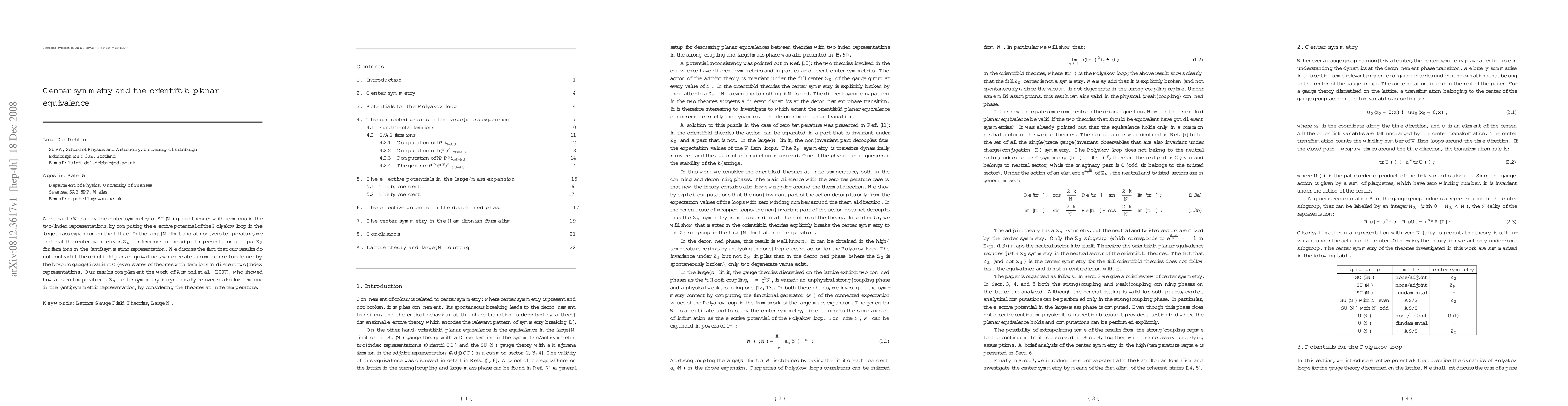 This paper investigates the center symmetry in SU(N) gauge theories with fermions in two-index representations, finding Z_N symmetry for adjoint fermions and Z_2 for (anti)symmetric ones at finite temperature. It reconciles these findings with the orientifold planar equivalence, complementing prior work on zero-temperature symmetry recovery.