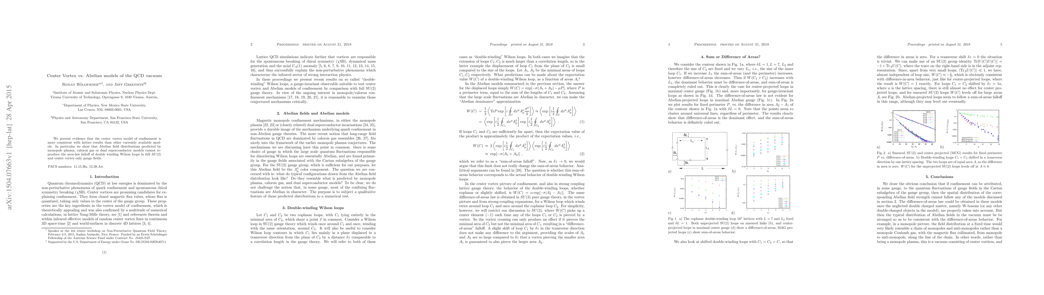 Summary: This paper demonstrates that the center vortex model aligns better with lattice QCD results than Abelian models, particularly in reproducing the area-law behavior of double winding Wilson loops, which other Abelian models fail to capture.