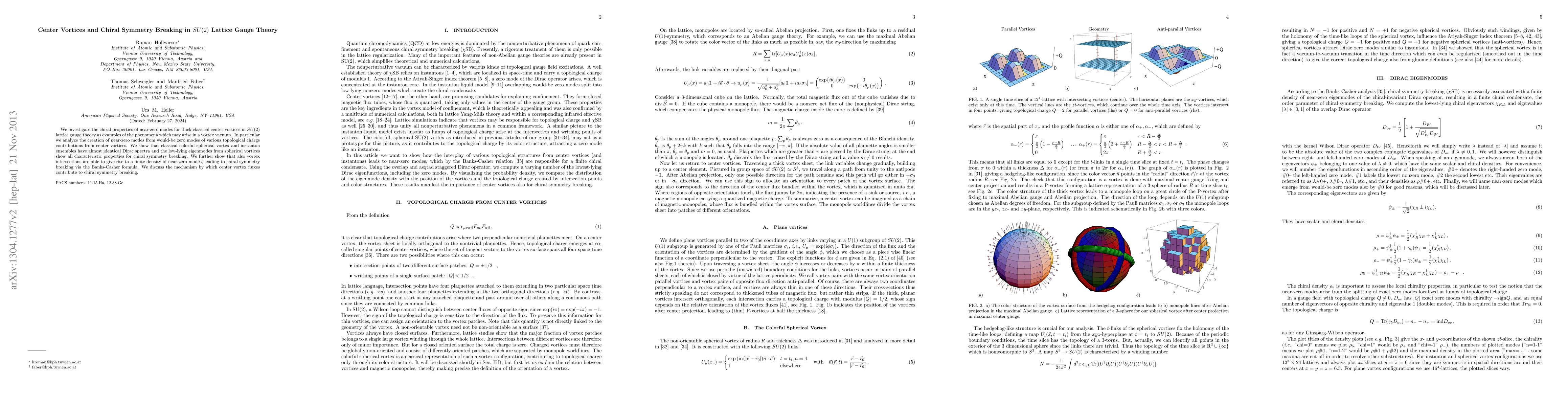 Summary: The study reveals that classical center vortices in SU(2) lattice gauge theory contribute to chiral symmetry breaking by creating near-zero modes, with vortex intersections also generating a finite density of these modes, consistent with the Banks-Casher mechanism. The analysis highlights the similarity in Dirac spectra between spherical vortex and instanton ensembles.