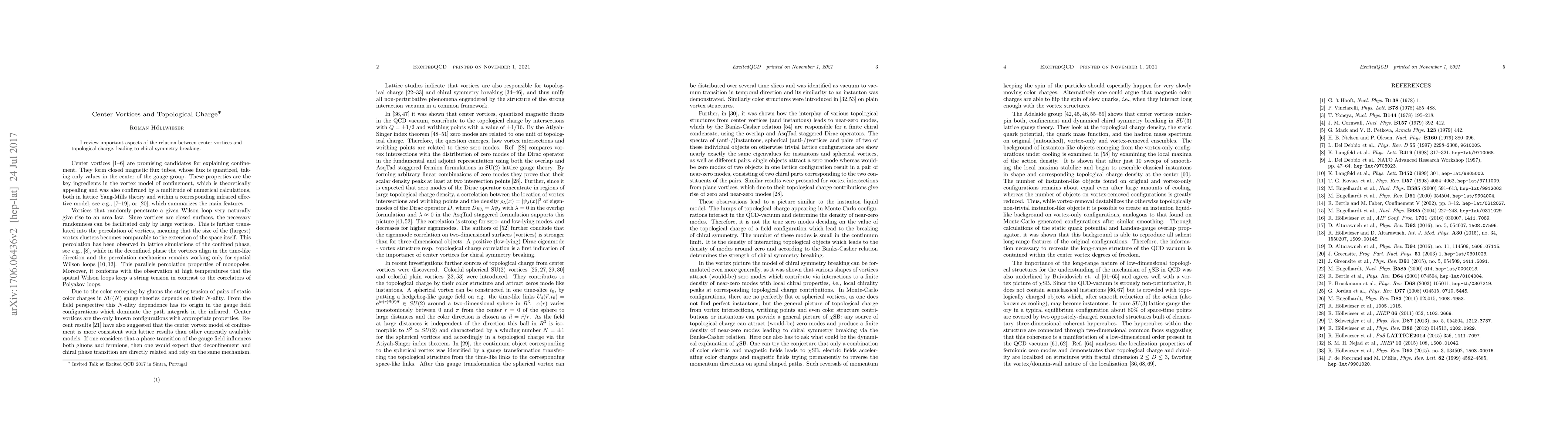I review important aspects of the relation between center vortices and topological charge, leading to chiral symmetry breaking.