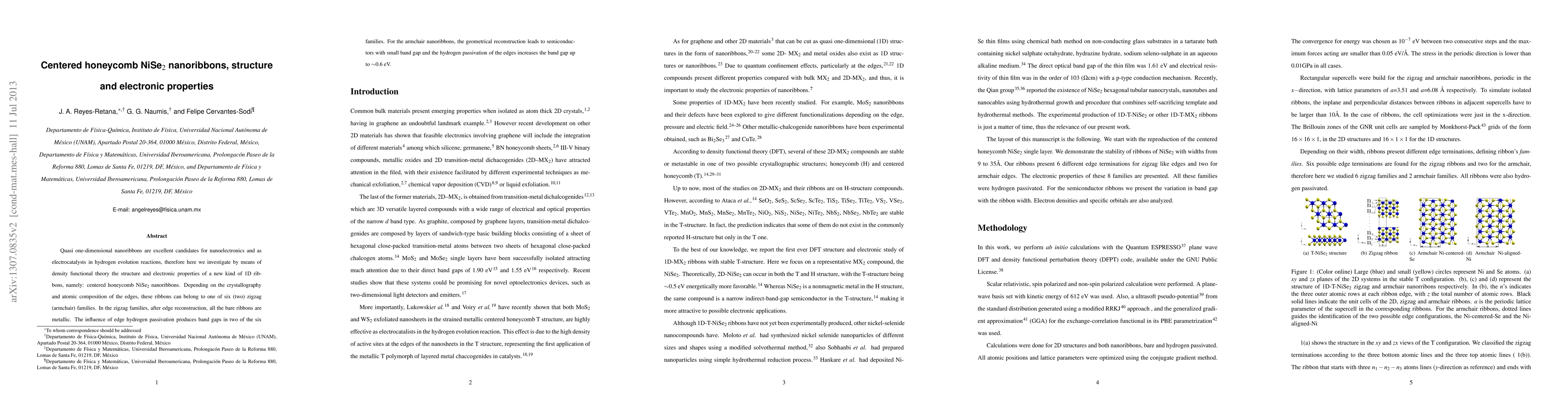 This study investigates the structural and electronic properties of centered honeycomb NiSe₂ nanoribbons using density functional theory. Depending on their edge configuration, these ribbons can be metallic or semiconducting, with hydrogen passivation altering their electronic properties.