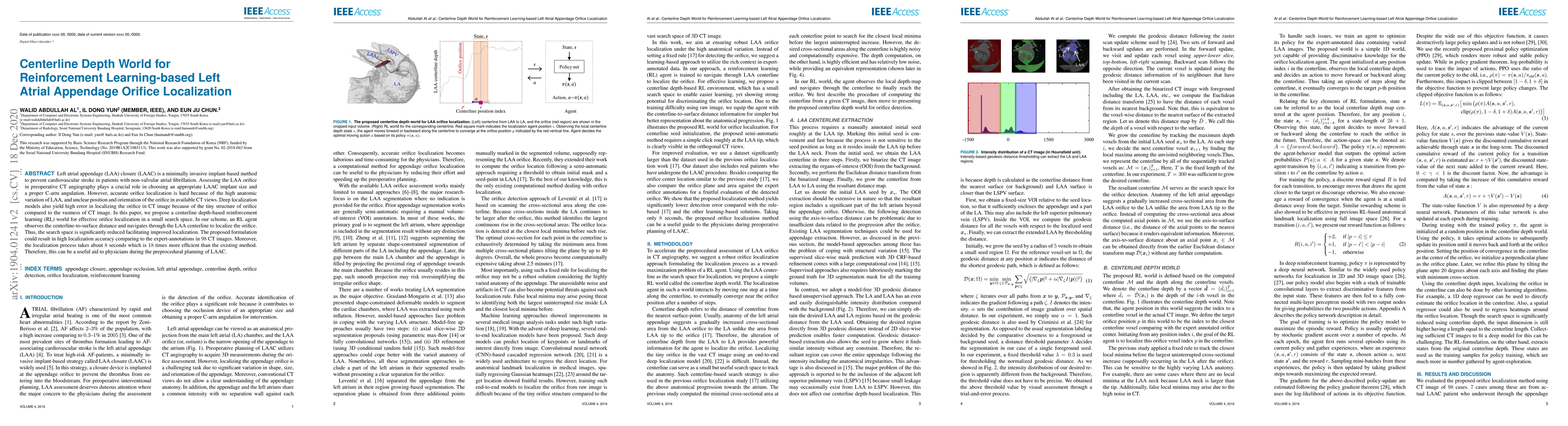 This paper proposes a centerline depth-based reinforcement learning approach for precise localization of the left atrial appendage orifice in preoperative CT angiography, significantly reducing the search space and improving accuracy compared to expert annotations. The method is 18 times faster than existing techniques, offering a valuable tool for preprocedural planning in LAA closure procedures.