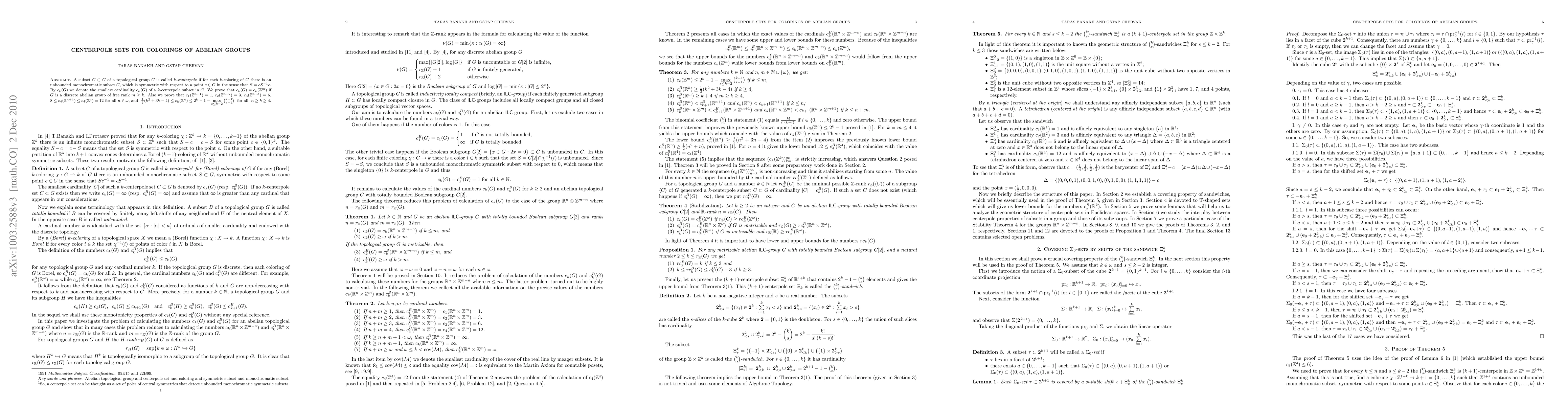 Given a topological group $G$ we calculate or evaluate the cardinal characteristic $c_k(G)$ (and $c_k^B(G)$) equal to the smallest cardinality of a $k$-centerpole subset $C\subset G$ for (Borel) colorings of $G$. A subset $C\subset G$ of a topological group $G$ is called {\em $k$-centerpole} if for each (Borel) $k$-coloring of $G$ there is an unbounded monochromatic subset $G$, which is symmetric with respect to a point $c\in C$ in the sense that $S=cS^{-1}c$.