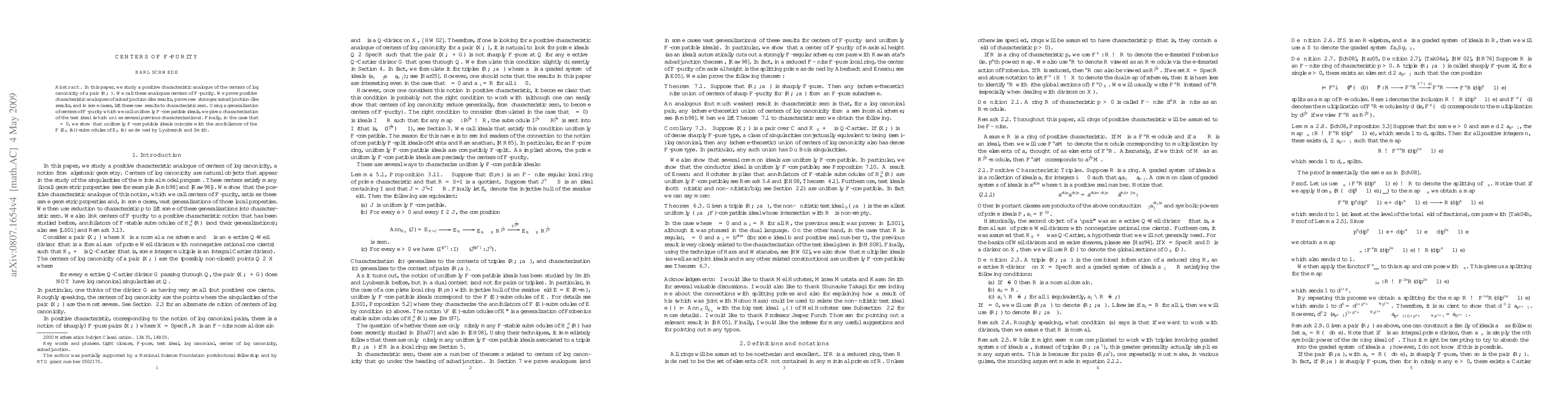 This paper investigates centers of $F$-purity, a positive characteristic analogue of log canonical centers, and proves subadjunction-like results. It also characterizes the test ideal using uniformly $F$-compatible ideals and demonstrates their equivalence with certain annihilators in characteristic zero when $\Delta = 0$.