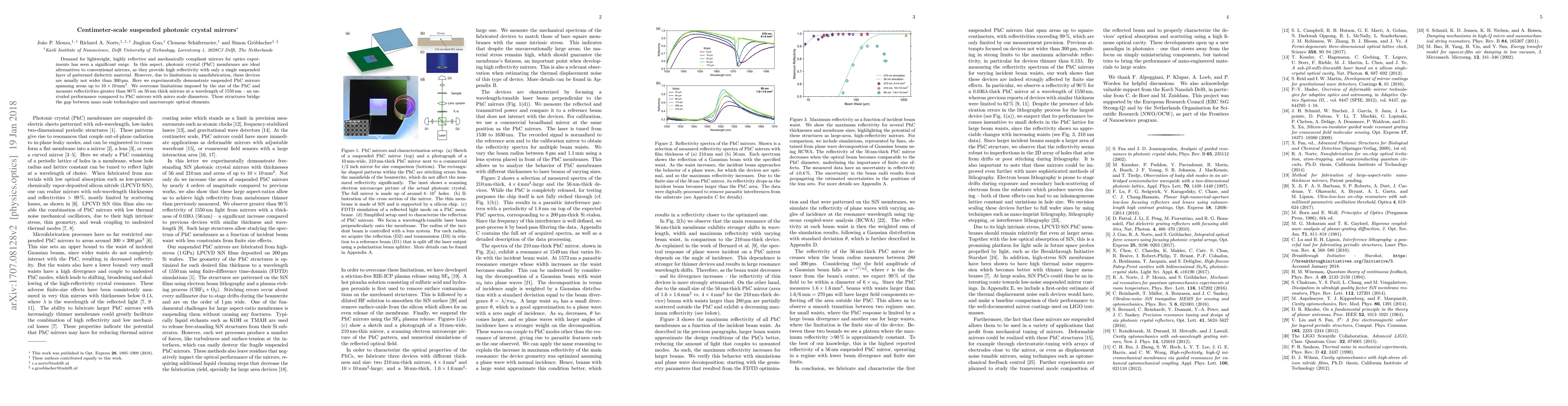 Demand for lightweight, highly reflective and mechanically compliant mirrors for optics experiments has seen a significant surge. In this aspect, photonic crystal (PhC) membranes are ideal alternatives to conventional mirrors, as they provide high reflectivity with only a single suspended layer of patterned dielectric material. However, due to limitations in nanofabrication, these devices are usually not wider than 300 $\mu$m. Here we experimentally demonstrate suspended PhC mirrors spanning areas up to 10$\times$10 mm. We overcome limitations imposed by the size of the PhC and measure reflectivities greater than 90% on 56 nm thick mirrors at a wavelength of 1550 nm -- an unrivaled performance compared to PhC mirrors with micro scale diameters. These structures bridge the gap between nano scale technologies and macroscopic optical elements.