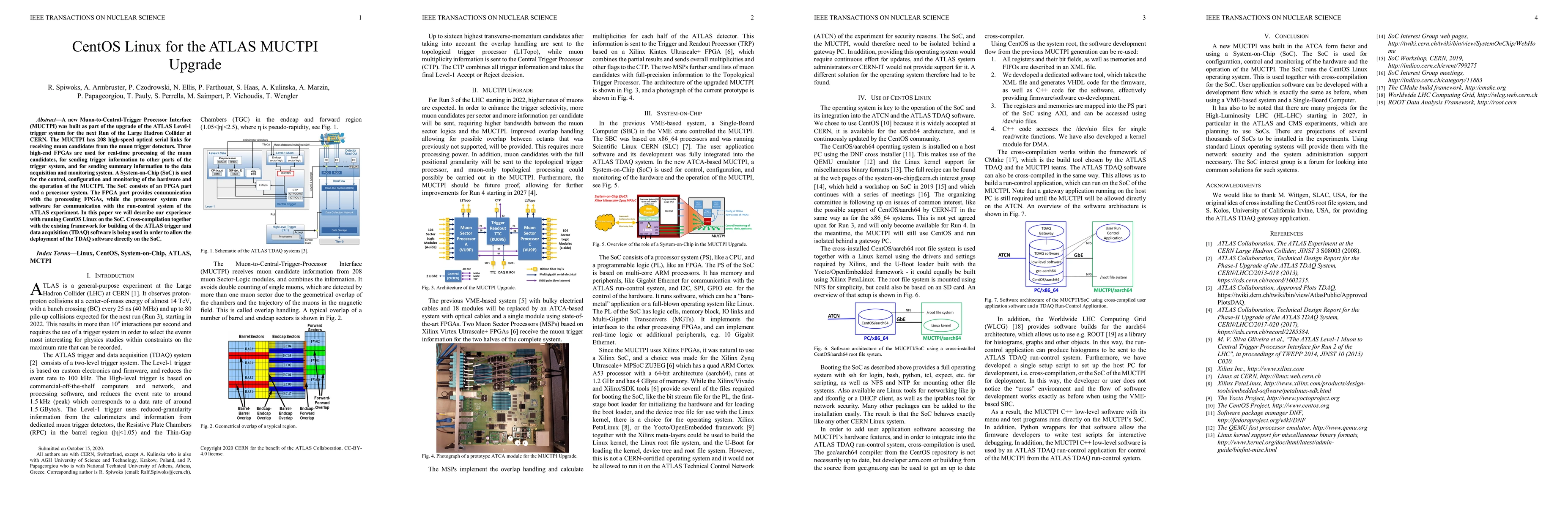This paper discusses the implementation of CentOS Linux on the System-on-Chip (SoC) for the ATLAS MUCTPI upgrade, focusing on the cross-compilation of ATLAS trigger and data acquisition software to run on the SoC for real-time muon candidate processing.