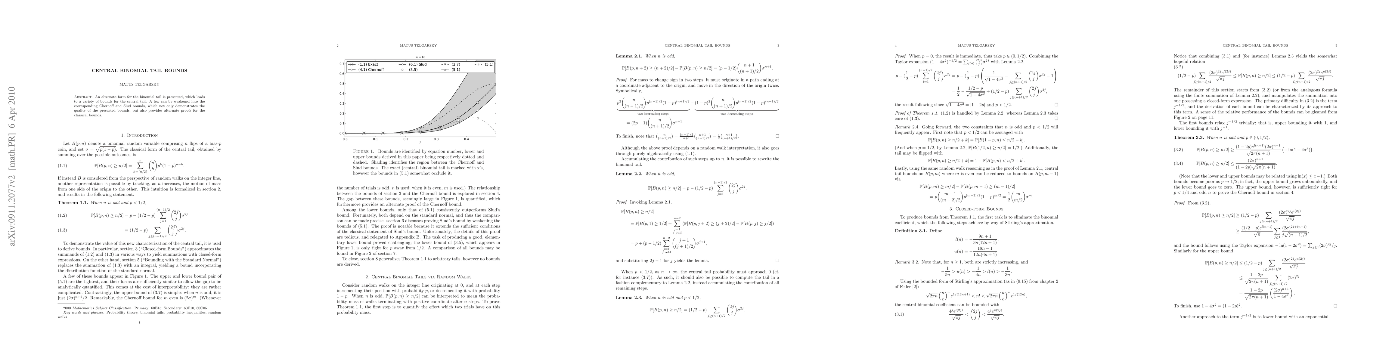 This paper introduces a new form for the binomial tail, deriving various central tail bounds that can be weakened into Chernoff and Slud bounds, showcasing their effectiveness and offering alternative proofs for classical results.
