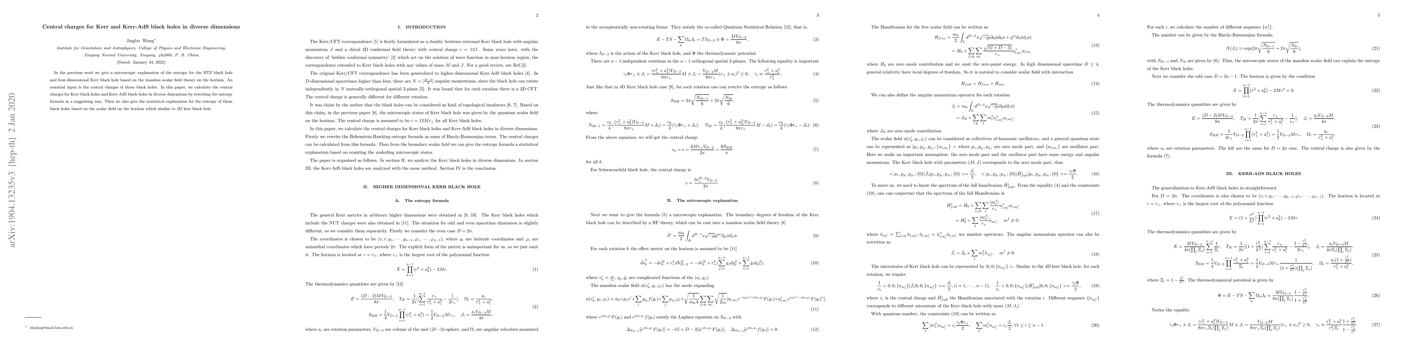 In the previous work we give a microscopic explanation of the entropy for the BTZ black hole and four-dimensional Kerr black hole based on the massless scalar field theory on the horizon. An essential input is the central charges of those black holes. In this paper, we calculate the central charges for Kerr black holes and Kerr-AdS black holes in diverse dimensions by rewriting the entropy formula in a suggesting way. Then we also give the statistical explanation for the entropy of those black holes based on the scalar field on the horizon which similar to 4D kerr black hole.