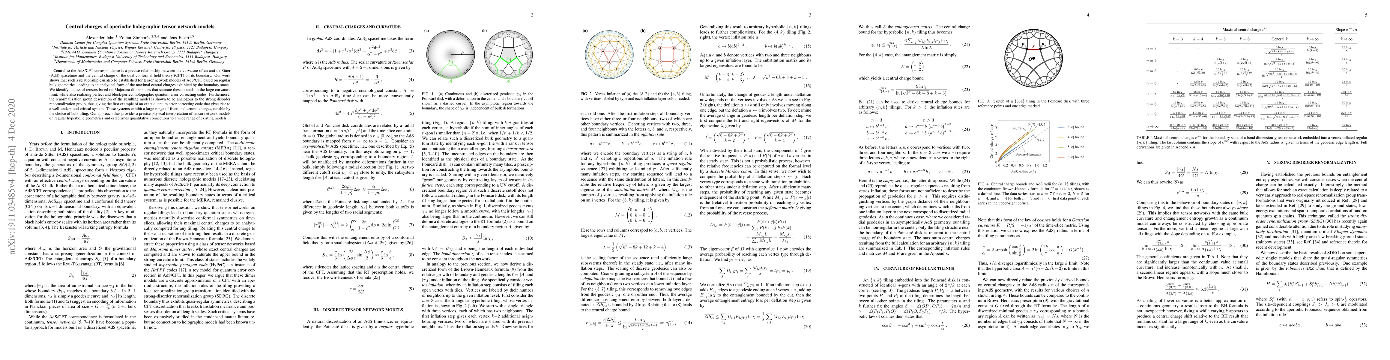 Central to the AdS/CFT correspondence is a precise relationship between the curvature of an anti-de Sitter (AdS) spacetime and the central charge of the dual conformal field theory (CFT) on its boundary. Our work shows that such a relationship can also be established for tensor network models of AdS/CFT based on regular bulk geometries, leading to an analytical form of the maximal central charges exhibited by the boundary states. We identify a class of tensors based on Majorana dimer states that saturate these bounds in the large curvature limit, while also realizing perfect and block-perfect holographic quantum error correcting codes. Furthermore, the renormalization group description of the resulting model is shown to be analogous to the strong disorder renormalization group, thus giving the first example of an exact quantum error correcting code that gives rise to a well-understood critical system. These systems exhibit a large range of fractional central charges, tunable by the choice of bulk tiling. Our approach thus provides a precise physical interpretation of tensor network models on regular hyperbolic geometries and establishes quantitative connections to a wide range of existing models.