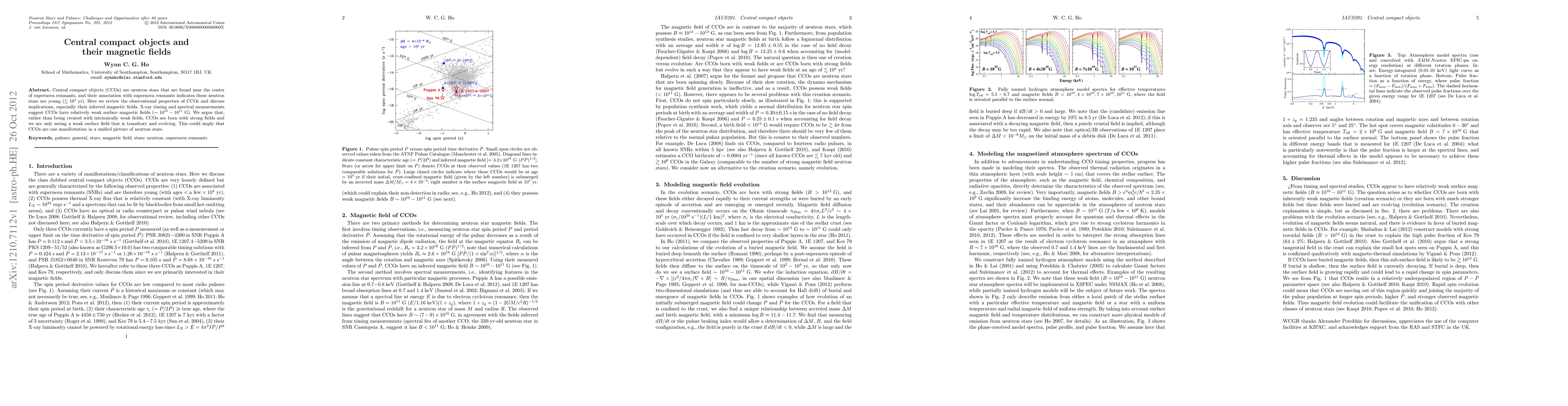 This paper reviews the observational properties of central compact objects (CCOs), young neutron stars near supernova remnants, and discusses their inferred magnetic fields. It suggests that CCOs likely have transitory, weak surface magnetic fields (~10^10 - 10^11 G), despite being born with strong fields, indicating a possible evolutionary process.