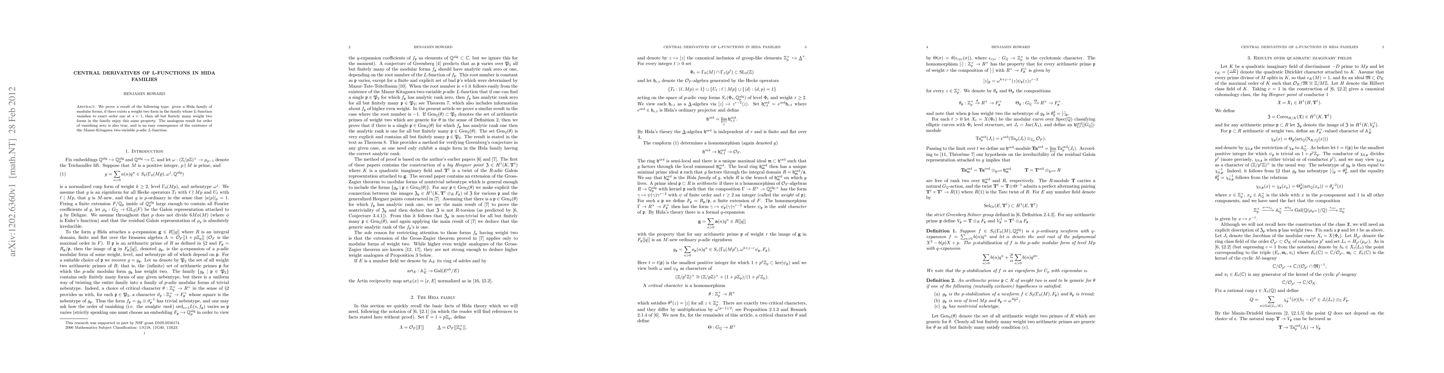 We prove a result of the following type: given a Hida family of modular forms, if there exists a weight two form in the family whose L-function vanishes to exact order one at s=1, then all but finitely many weight two forms in the family enjoy this same property. The analogous result for order of vanishing zero is also true, and is an easy consequence of the existence of the Mazur-Kitagawa two-variable p-adic L-function.