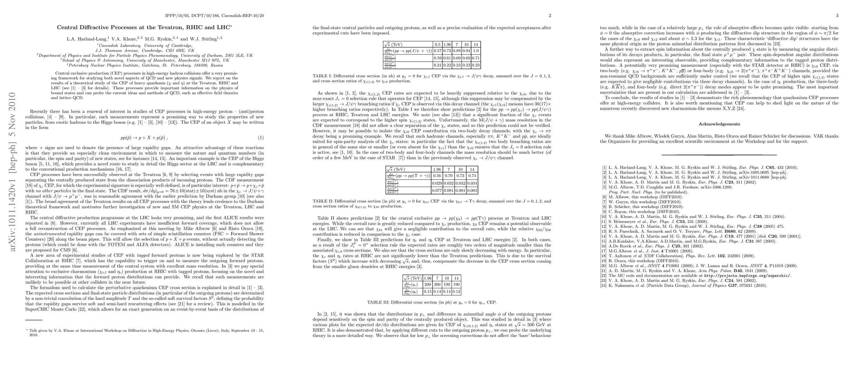 Researchers studied central exclusive production of heavy quarkonia in high-energy collisions at Tevatron, RHIC, and LHC to gain insights into QCD physics and new physics signals.