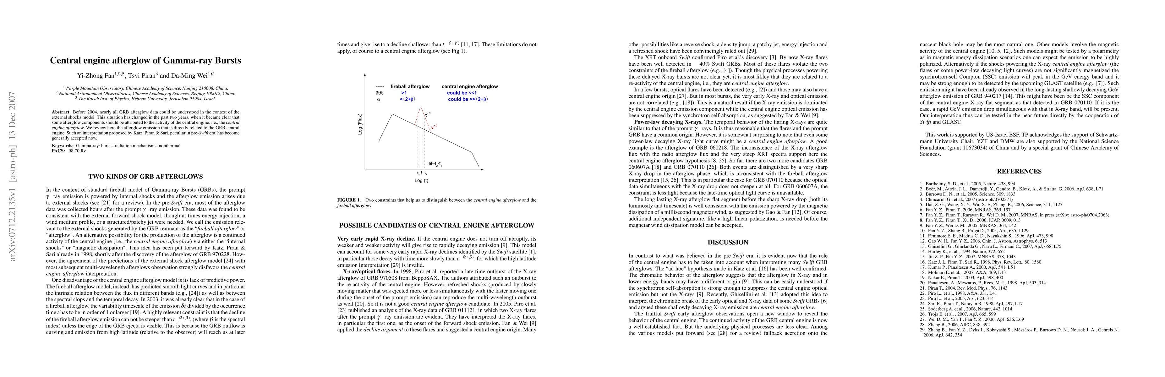 Prior to 2004, Gamma-ray Burst (GRB) afterglows were explained by external shock models. However, recent data suggests a significant contribution from the central engine, termed 'central engine afterglow'. This perspective, once unconventional, is now widely accepted post-Swift era observations.