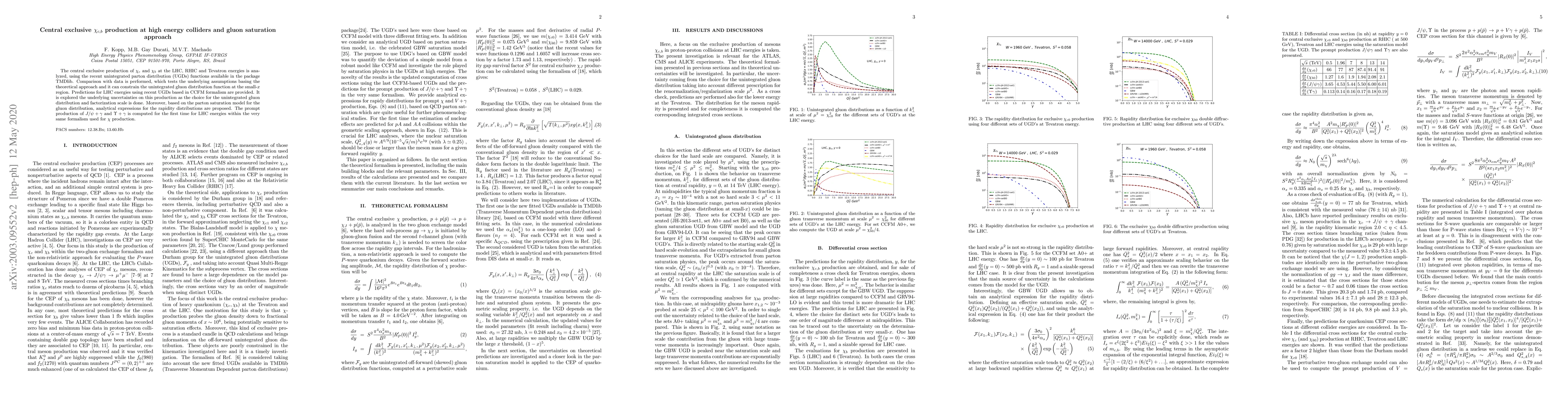 The central exclusive production of $\chi_{c}$ and $\chi_{b}$ at the LHC, RHIC and Tevatron energies is analyzed, using the recent unintegrated parton distribution (UGDs) functions available in the package TMDlib. Comparison with data is performed, which tests the underlying assumptions basing the theoretical approach and it can constrain the unintegrated gluon distribution function at the small-$x$ region. Predictions for LHC energies using recent UGDs based in CCFM formalism are provided. It is explored the underlying uncertainties on this production as the choice for the unintegrated gluon distribution and factorization scale is done. Moreover, based on the parton saturation model for the gluon distribution, analytical expressions for the rapidity distributions are proposed. The prompt production of $J/\psi+\gamma$ and $\Upsilon+\gamma$ is computed for the first time for LHC energies within the very same formalism used for $\chi$ production.