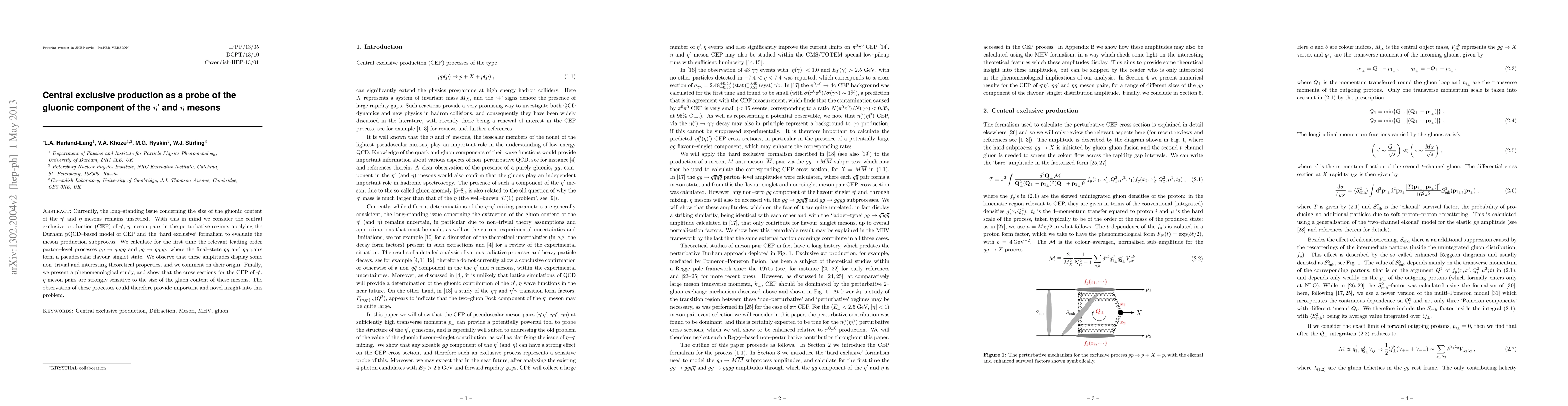 This paper investigates the central exclusive production of eta' and eta meson pairs to probe their gluonic content, using a Durham pQCD-based model and the 'hard exclusive' formalism. It finds that the cross sections for these processes are highly sensitive to the gluonic content, suggesting that observing these processes could provide new insights into the longstanding issue of the gluonic component of these mesons.
