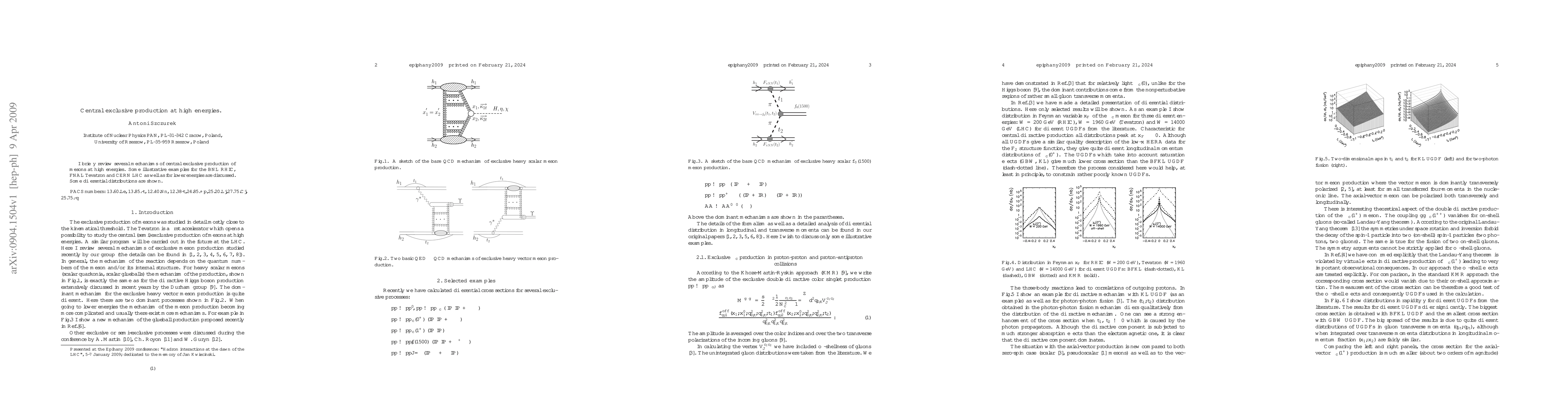 This paper reviews mechanisms for central exclusive production of mesons at high energies, highlighting examples from various facilities including BNL RHIC, FNAL Tevatron, and CERN LHC, and presents some differential distributions.