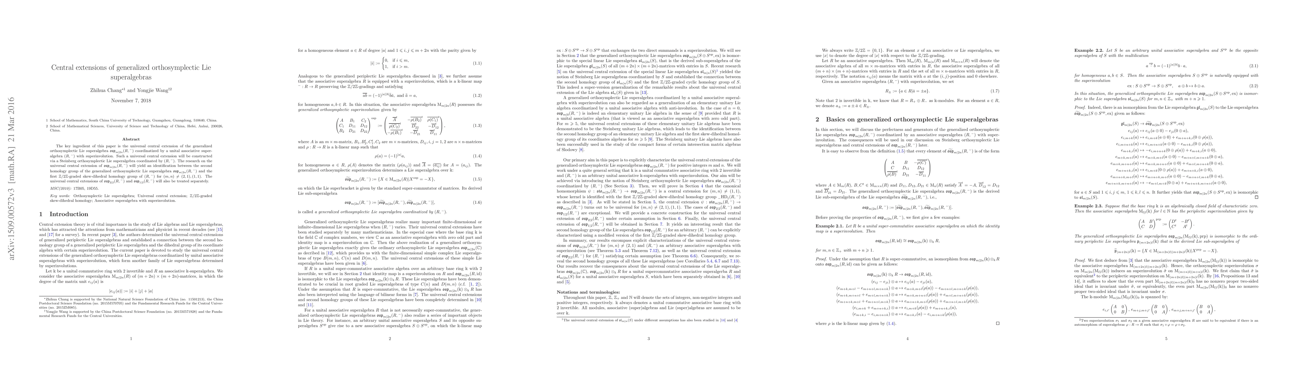 This paper constructs the universal central extension of the generalized orthosymplectic Lie superalgebra $\mathfrak{osp}_{m|2n}(R,{}^-)$, revealing a homology group identification, and separately treats the cases for $\mathfrak{osp}_{2|2}(R,{}^-)$ and $\mathfrak{osp}_{1|2}(R,{}^-)$.