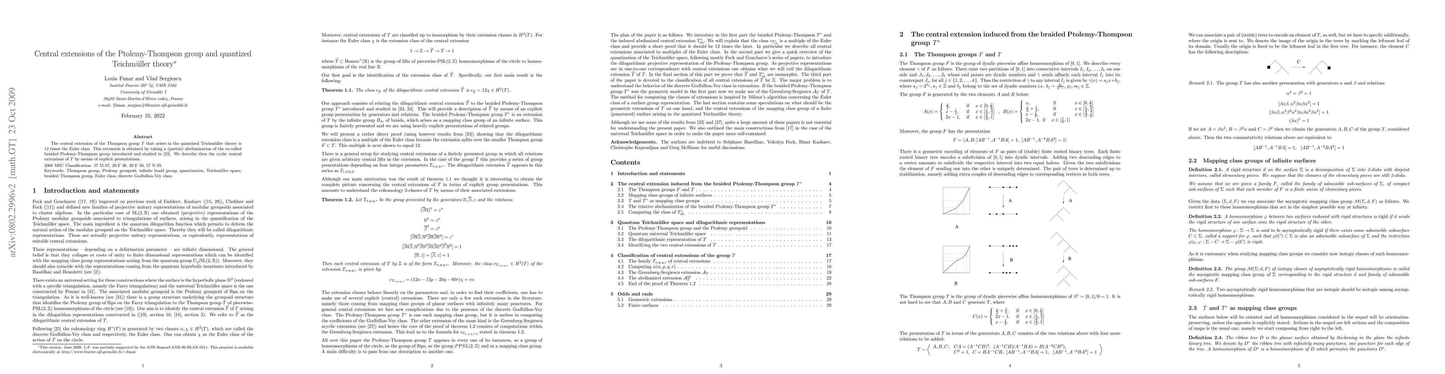 This paper explores the central extension of the Thompson group $T$ in the context of quantized Teichmüller theory, revealing that it is 12 times the Euler class. The authors provide explicit presentations for the cyclic central extensions of $T$ through the partial abelianization of the braided Ptolemy-Thompson group.