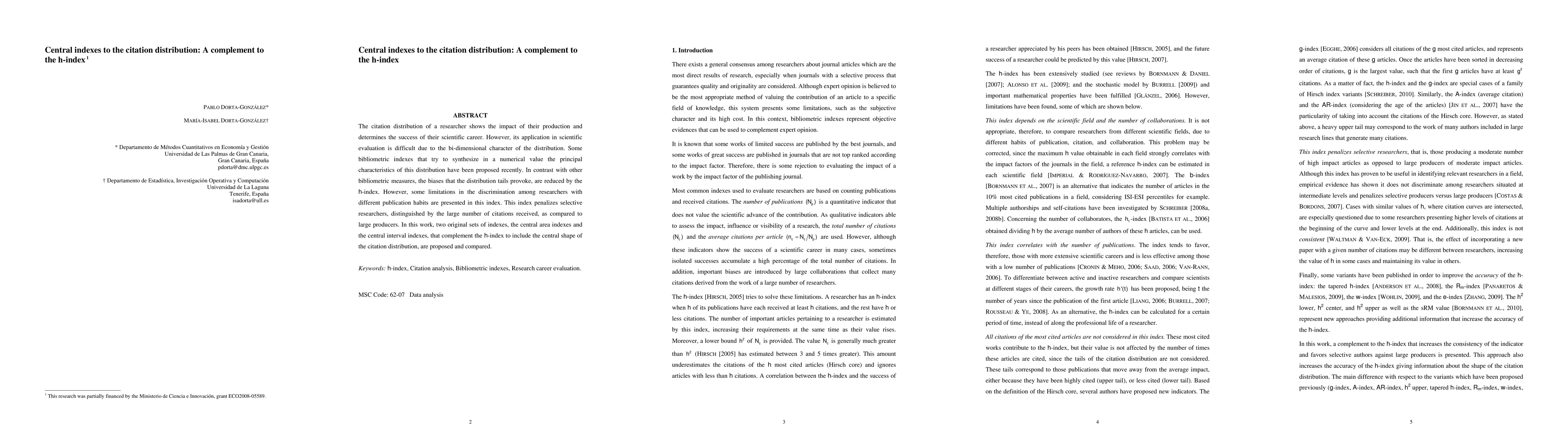 The citation distribution of a researcher shows the impact of their production and determines the success of their scientific career. However, its application in scientific evaluation is difficult due to the bi-dimensional character of the distribution. Some bibliometric indexes that try to synthesize in a numerical value the principal characteristics of this distribution have been proposed recently. In contrast with other bibliometric measures, the biases that the distribution tails provoke, are reduced by the h-index. However, some limitations in the discrimination among researchers with different publication habits are presented in this index. This index penalizes selective researchers, distinguished by the large number of citations received, as compared to large producers. In this work, two original sets of indexes, the central area indexes and the central interval indexes, that complement the h-index to include the central shape of the citation distribution, are proposed and compared.
