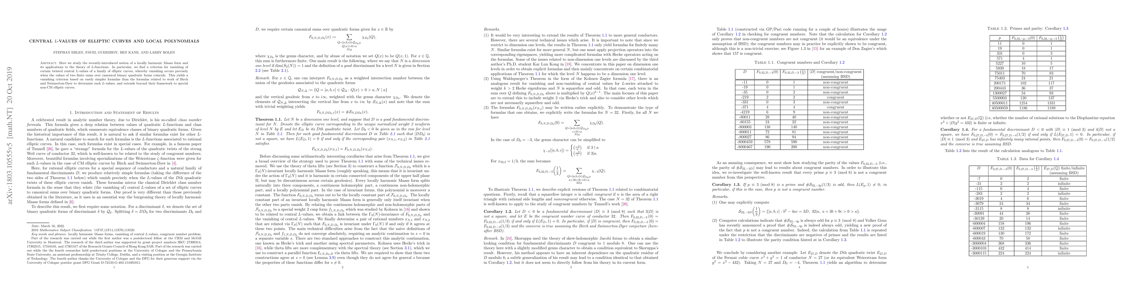 Here we study the recently introduced notion of a locally harmonic Maass form and its applications to the theory of $L$-functions. In particular, we find finite formulas for certain twisted central $L$-values of a family of elliptic curves in terms of finite sums over canonical binary quadratic forms. This yields vastly simpler formulas related to work of Birch and Swinnerton-Dyer for such $L$-values, and extends beyond their framework to special non-CM elliptic curves.
