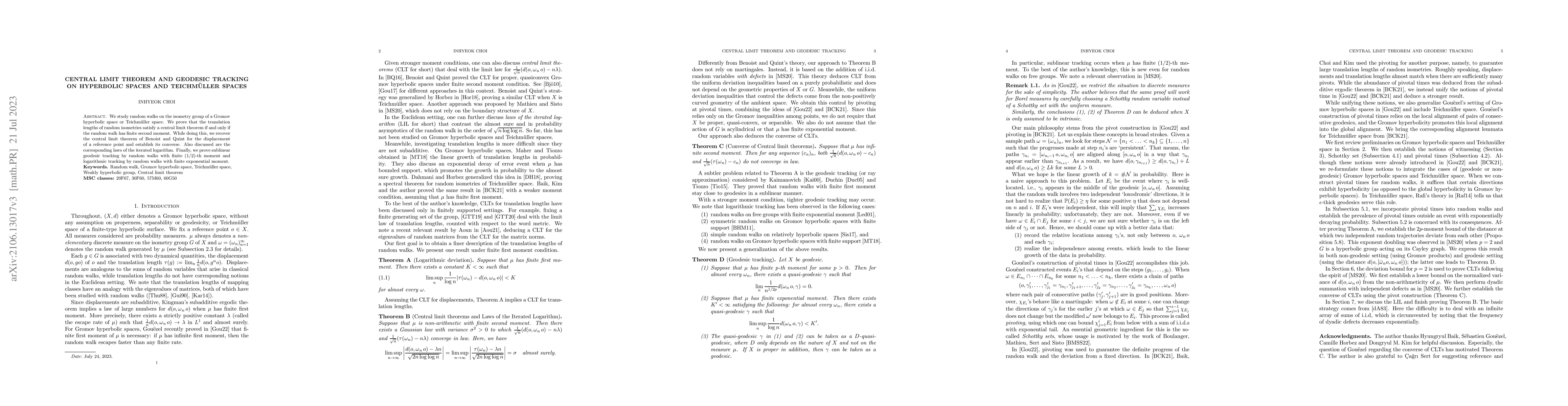 This paper investigates random walks on the isometry group of hyperbolic spaces and Teichmüller spaces, proving a central limit theorem for translation lengths under finite second moment conditions. It also establishes sublinear and logarithmic tracking laws for random walks with specific moment conditions.