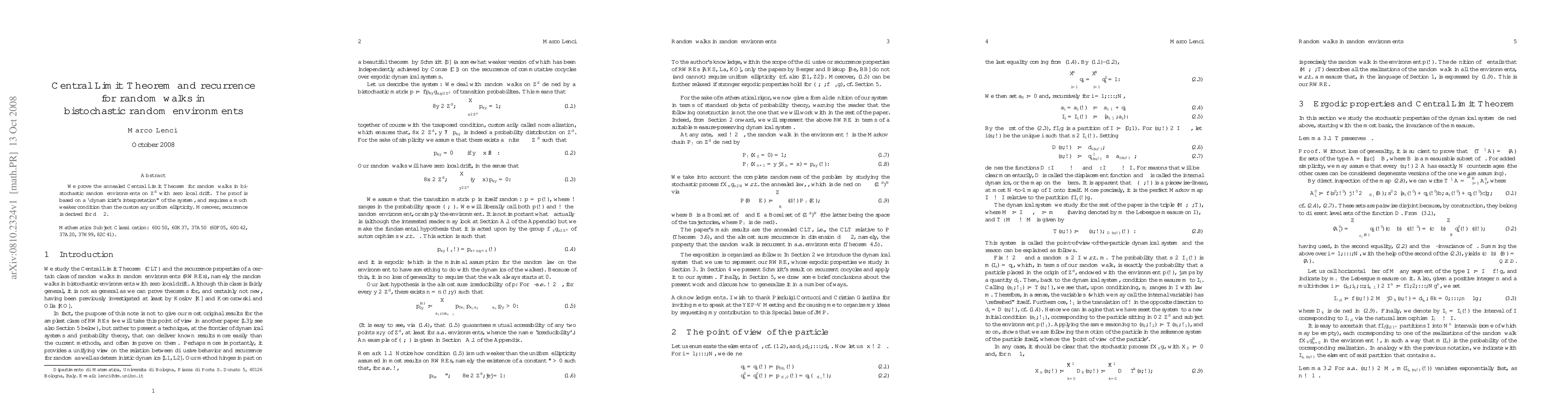 Summary: This paper proves the annealed Central Limit Theorem for random walks in bistochastic random environments on $Z^d$ with zero local drift, using a "dynamicist's interpretation" and weaker conditions. It also establishes recurrence for dimensions $d \le 2$.