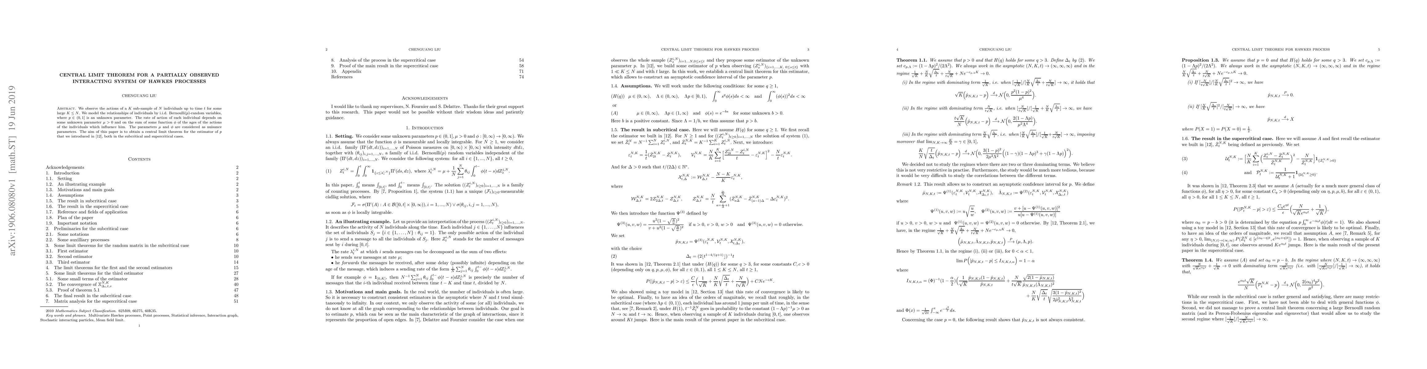 We observe the actions of a $K$ sub-sample of $N$ individuals up to time $t$ for some large $K\le N$. We model the relationships of individuals by i.i.d. Bernoulli($p$)-random variables, where $p\in (0,1]$ is an unknown parameter. The rate of action of each individual depends on some unknown parameter $\mu> 0$ and on the sum of some function $\phi$ of the ages of the actions of the individuals which influence him. The parameters $\mu$ and $\phi$ are considered as nuisance parameters. The aim of this paper is to obtain a central limit theorem for the estimator of $p$ that we introduced in \cite{D}, both in the subcritical and supercritical cases.