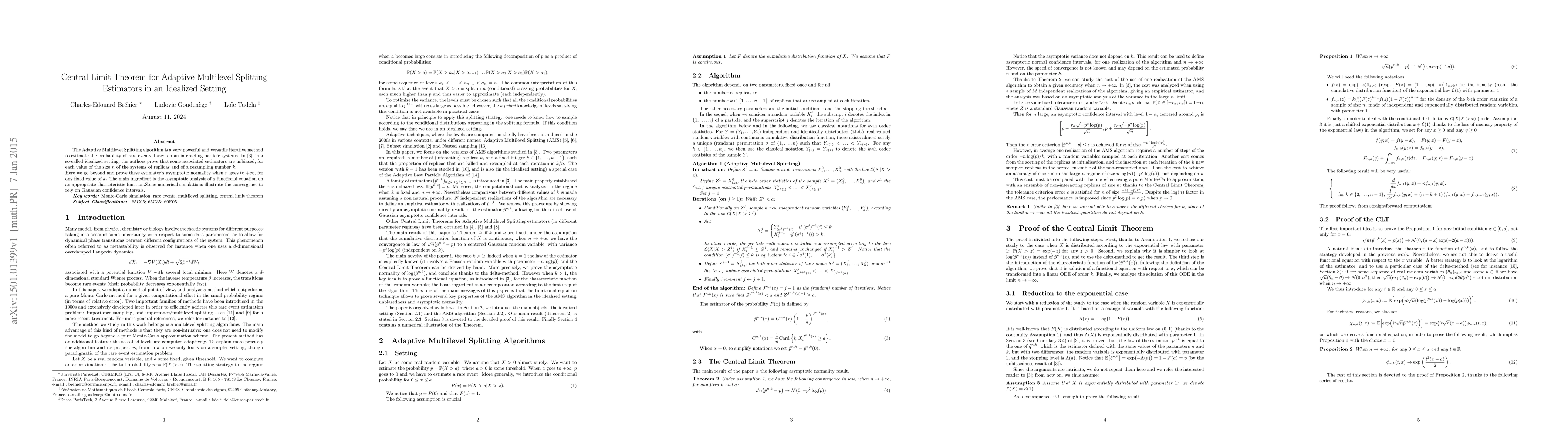 This paper proves the asymptotic normality of Adaptive Multilevel Splitting estimators for rare event probability in an idealized setting, demonstrating convergence to Gaussian distributions as the system size increases, validated by numerical simulations.