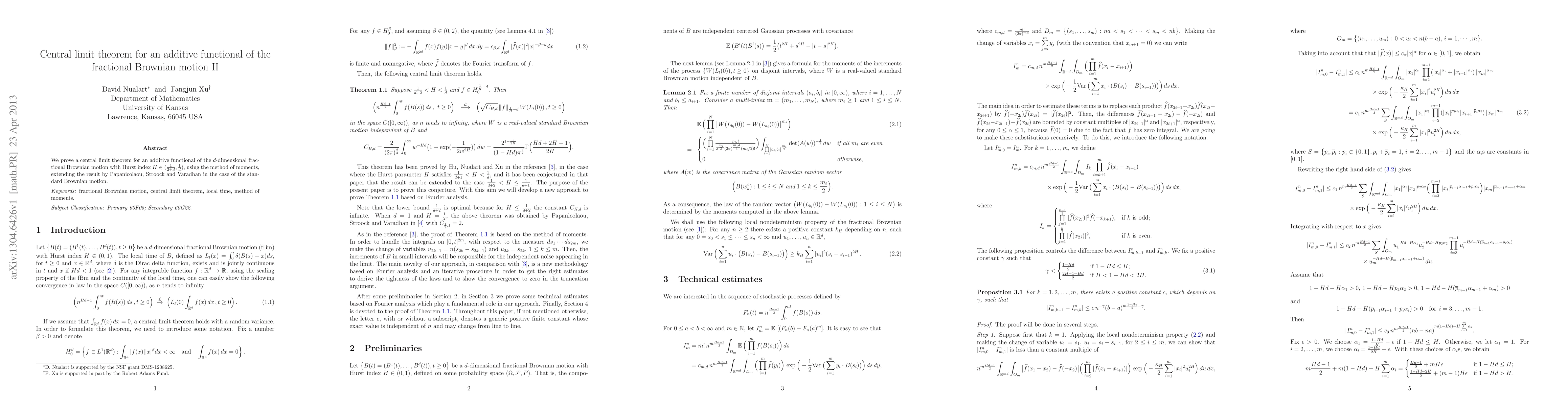 We prove a central limit theorem for an additive functional of the $d$-dimensional fractional Brownian motion with Hurst index $H\in(\frac{1}{2+d},\frac{1}{d})$, using the method of moments, extending the result by Papanicolaou, Stroock and Varadhan in the case of the standard Brownian motion.
