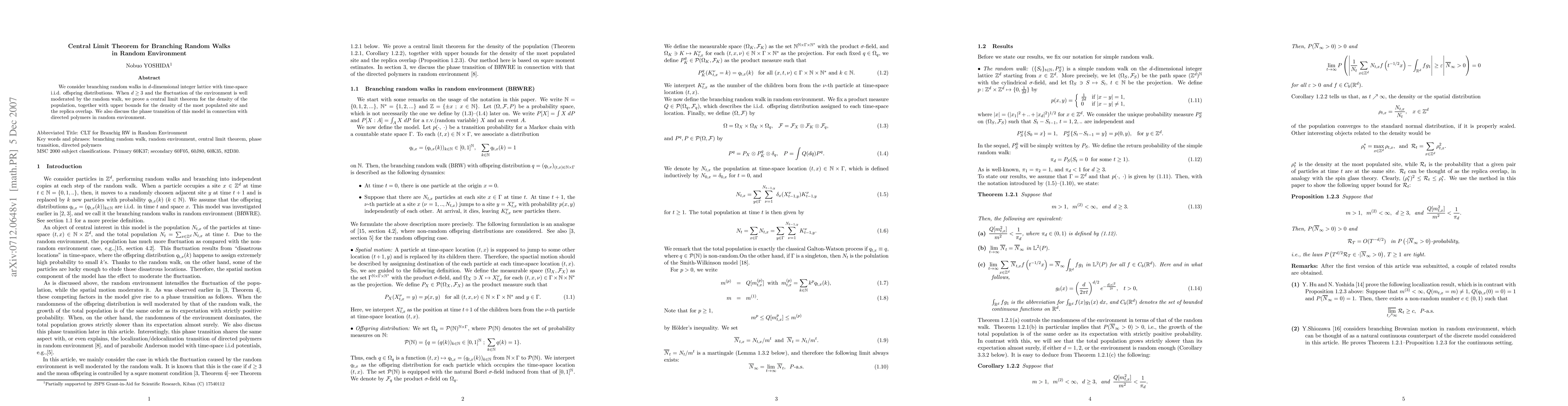 Two-line summary: This paper proves a central limit theorem for branching random walks in a $d$-dimensional lattice under moderated environmental fluctuations, showing convergence in the population density. It also provides bounds for the most populated site's density and replica overlap, and explores the phase transition related to directed polymers in random environments.