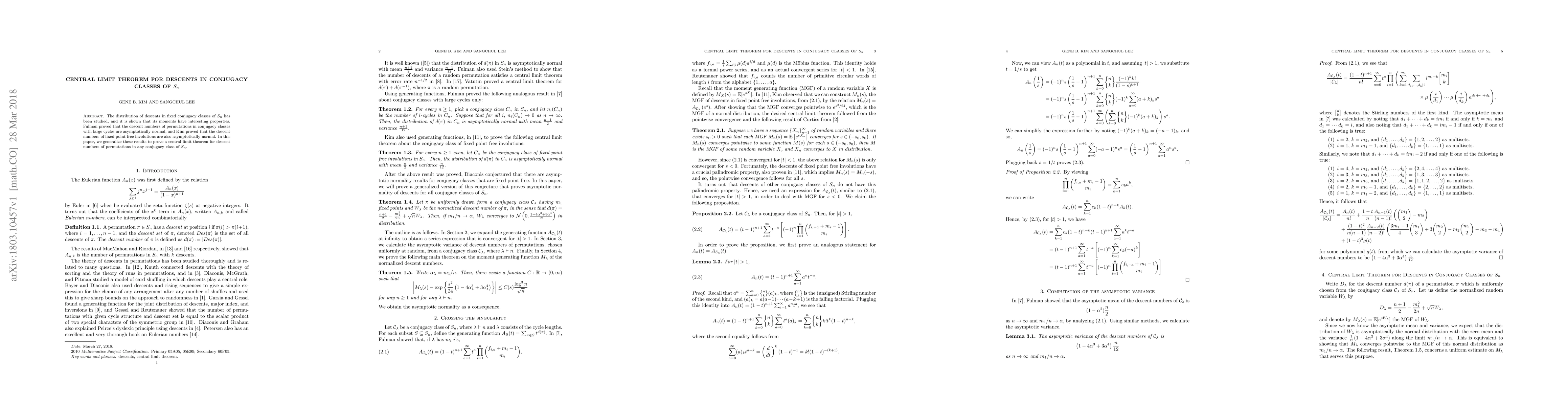 Summary: This paper extends the central limit theorem to show that the distribution of descents in any conjugacy class of the symmetric group $S_n$ converges to a normal distribution, generalizing prior results on specific classes.
