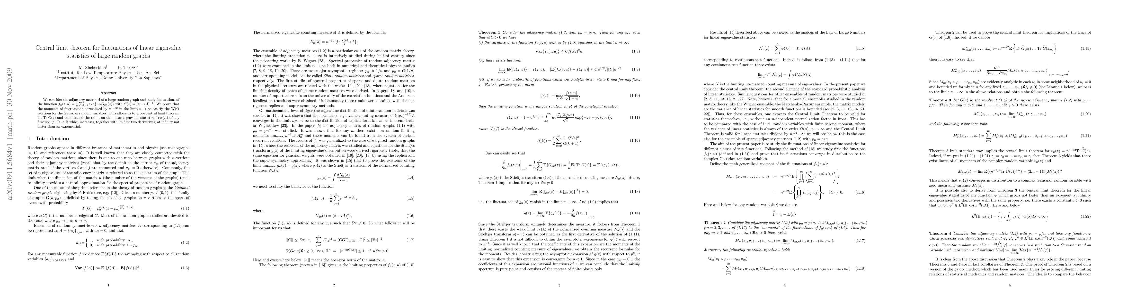 This paper proves a central limit theorem for fluctuations in linear eigenvalue statistics of large random graphs, showing that normalized moments satisfy Wick relations for Gaussian random variables, thereby extending the result to a wide class of functions.