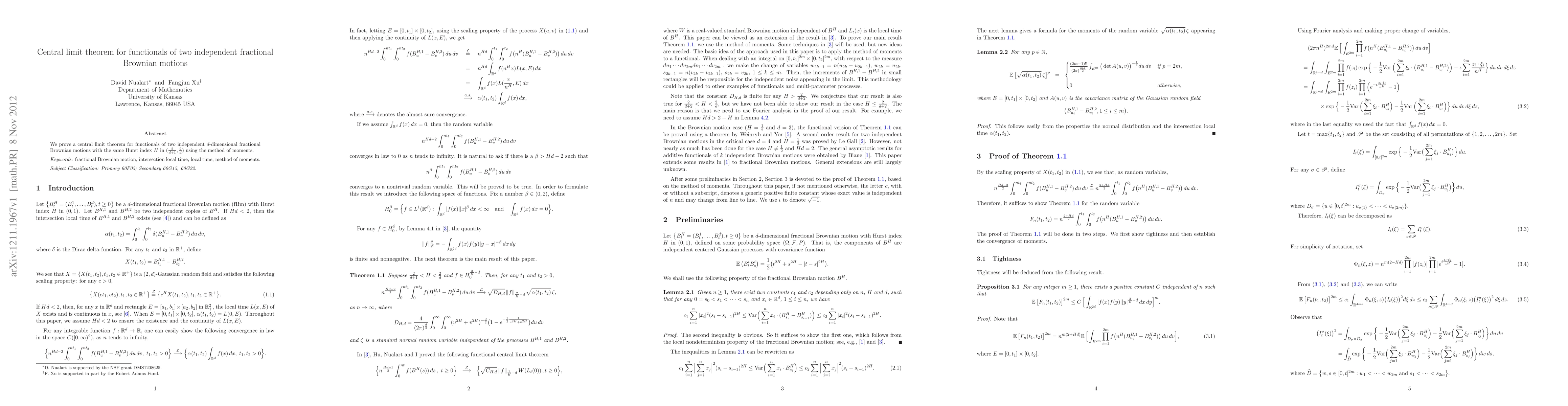 Summary: This paper establishes a central limit theorem for functionals of two independent fractional Brownian motions with identical Hurst indices, proving convergence to a normal distribution via the method of moments. The result is valid for dimensions where $2/(d+1) < H < 2/d$.