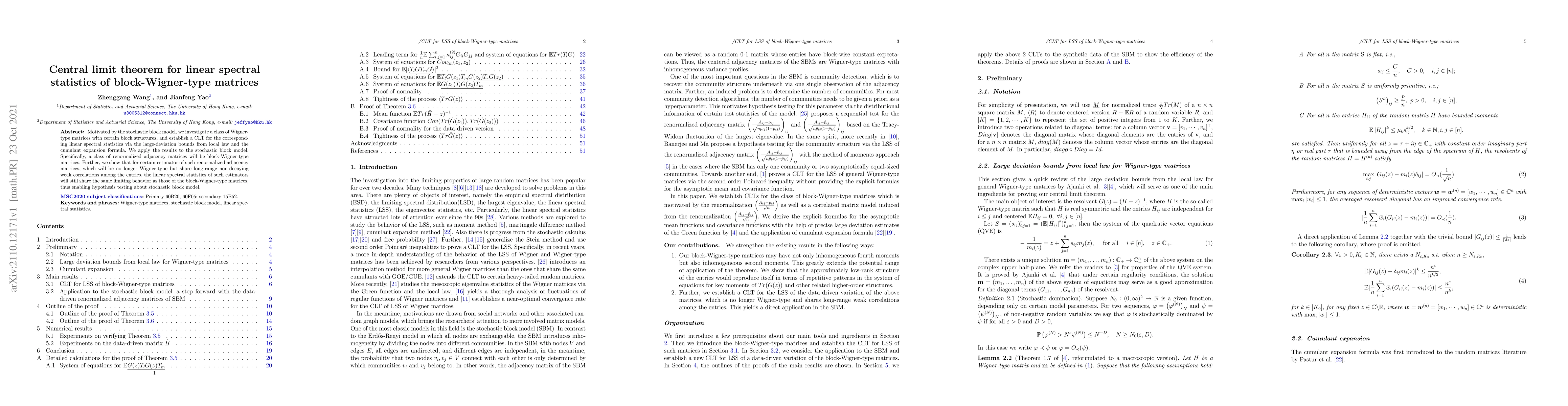 This research establishes a central limit theorem (CLT) for linear spectral statistics of block-Wigner-type matrices, derived using large-deviation bounds and cumulant expansion. The findings enable hypothesis testing in the stochastic block model, showing similar limiting behavior for certain renormalized adjacency matrices despite non-decaying correlations.