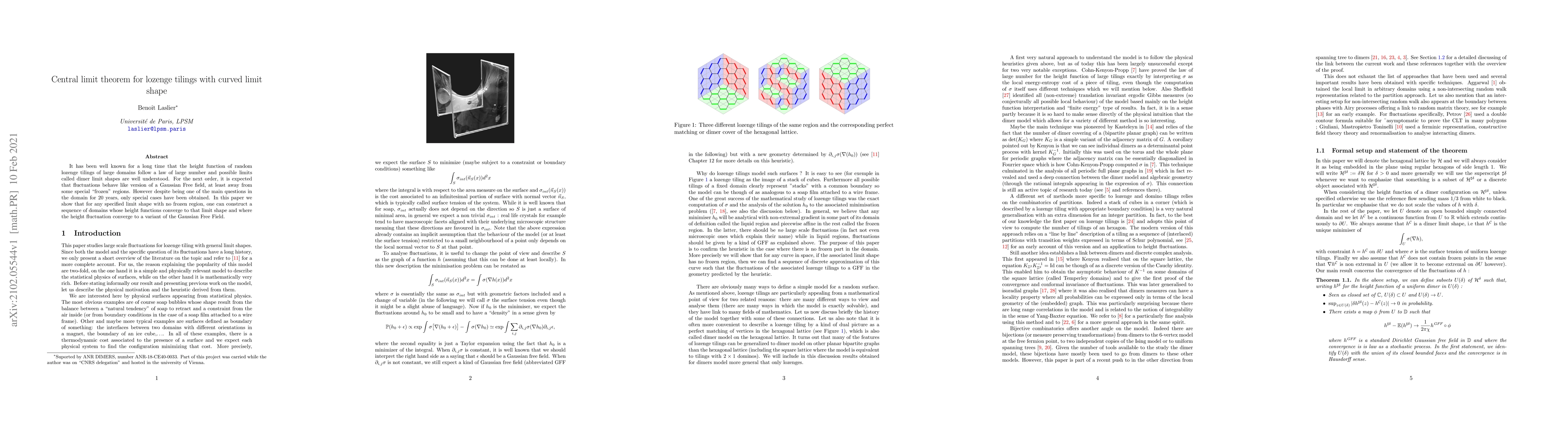 It has been well known for a long time that the height function of random lozenge tilings of large domains follow a law of large number and possible limits called dimer limit shapes are well understood. For the next order, it is expected that fluctuations behave like version of a Gaussian Free field, at least away from some special "frozen" regions. However despite being one of the main questions in the domain for 20 years, only special cases have been obtained. In this paper we show that for any specified limit shape with no frozen region, one can construct a sequence of domains whose height functions converge to that limit shape and where the height fluctuation converge to a variant of the Gaussian Free Field.