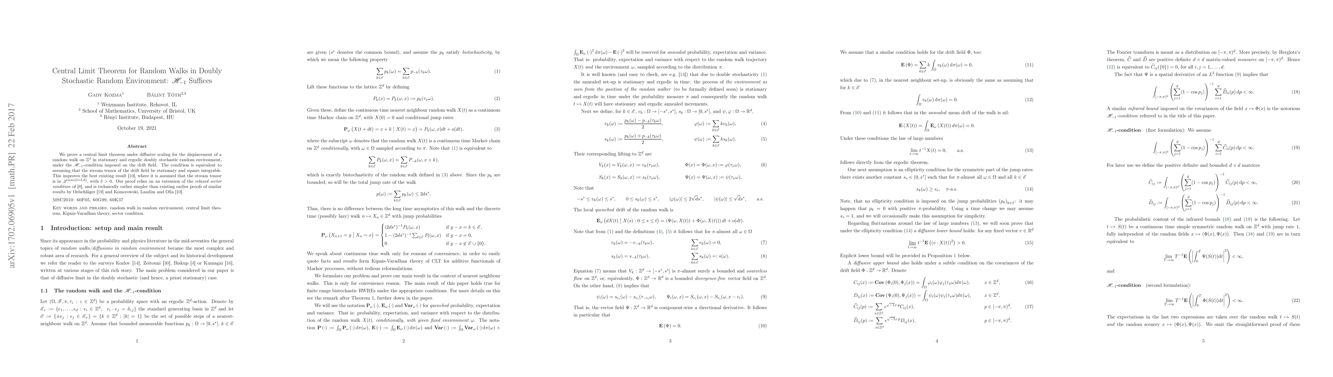 This research paper proves a Central Limit Theorem for random walks in doubly stochastic random environments on u211d^d, under a weaker u03c4_(-1)-condition on the drift field, compared to previous works. The proof uses an extended relaxed sector condition and is simpler than earlier methods, improving upon results by Komorowski et al. (2012) and Oelschlu00e4ger (1988).