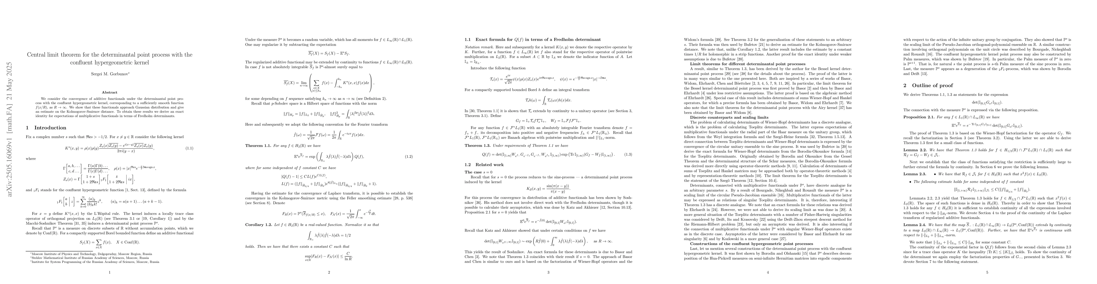 Researchers demonstrate that determinantal point processes with a confluent hypergeometric kernel converge to a Gaussian distribution as the process parameter approaches infinity, providing insight into additive functionals and their expectations.