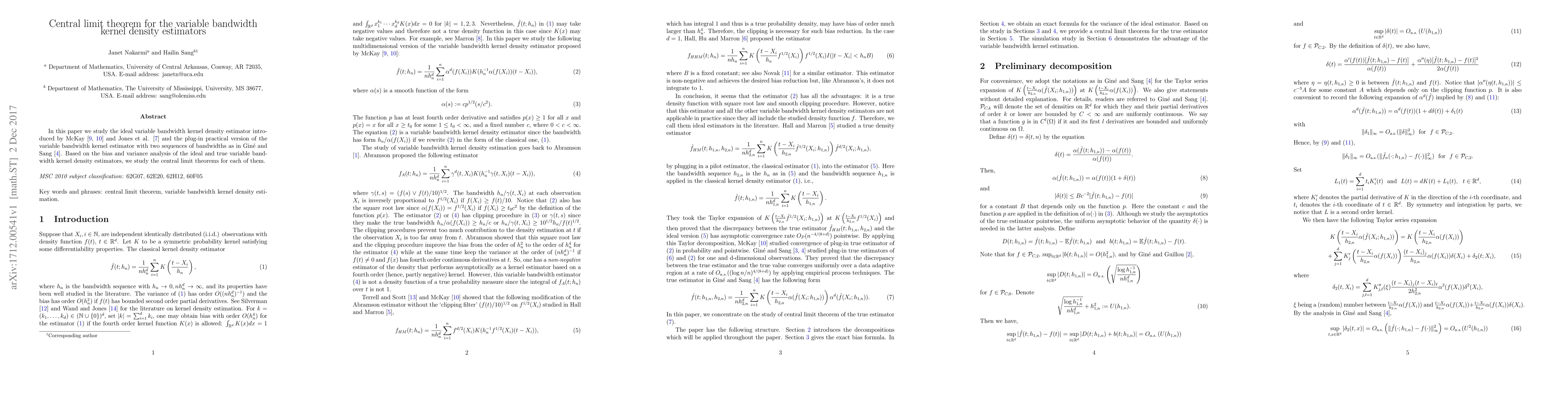 This paper investigates the central limit theorem for both the ideal variable bandwidth kernel density estimator and its practical plug-in version, analyzing their bias and variance to establish their respective convergence properties.