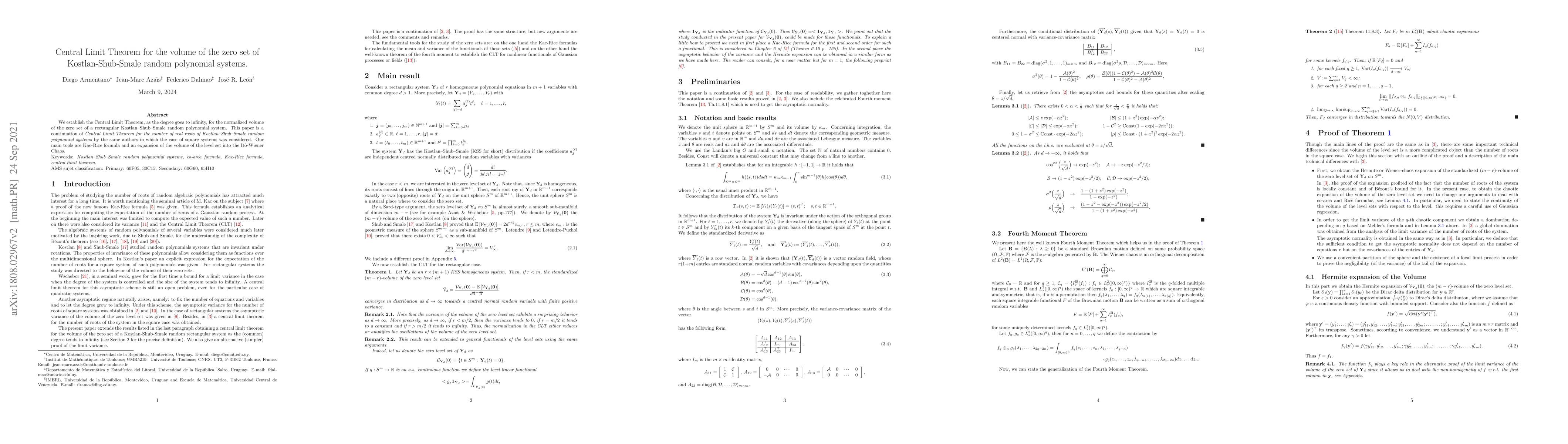 Summary: This paper establishes the Central Limit Theorem for the normalized volume of the zero set of rectangular Kostlan-Shub-Smale random polynomial systems as the degree approaches infinity. The study builds on previous work that focused on the number of real roots, employing the Kac-Rice formula and Itô-Wiener Chaos expansion as primary analytical tools.